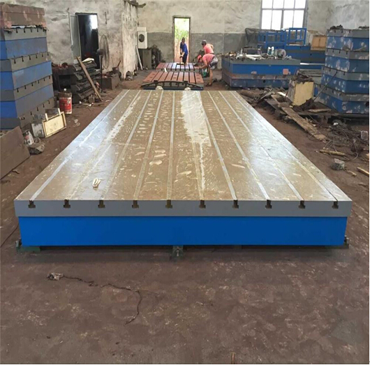 人防鑄鐵平臺的生產(chǎn)工藝級流程:鑄鐵平臺采用消失模與樹脂砂相結(jié)合鑄造工藝鑄造而成。為達(dá)到xiaochu鑄造內(nèi)應(yīng)力與加工內(nèi)應(yīng)力的目的,經(jīng)過兩次xiaochu內(nèi)應(yīng)力處理。內(nèi)應(yīng)力xiaochu處理方式為:人工退火處理,時效振動儀振動處理,和自然時效處理(自然放置2-3年)。目前多采用人工退火處理和時效振動儀振動處理。為保證其平面度準(zhǔn)確穩(wěn)定及抗磨性,平臺臺面多采用人工鏟刮處理。工作面可以設(shè)計圓孔,長方孔,方孔,T型槽,U型槽,V型槽等以便于工件或工裝夾具的安放。